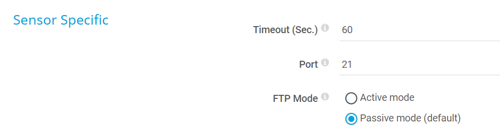 Define the FTP connection mode that the sensor uses for the connection to the FTP server: