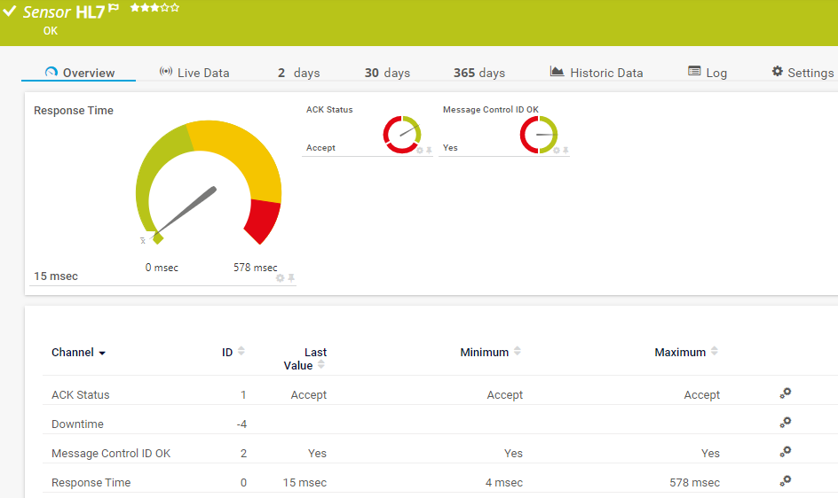 You can define your own messages in HL7 format as .hl7 files in the PRTG program directory. This sensor sends them to the HL7-capable system with each scanning interval.