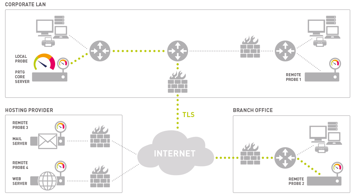 PRTG is a unified monitoring tool that can monitor almost any object that has an IP address. It consists of the PRTG core server and one or more probes: