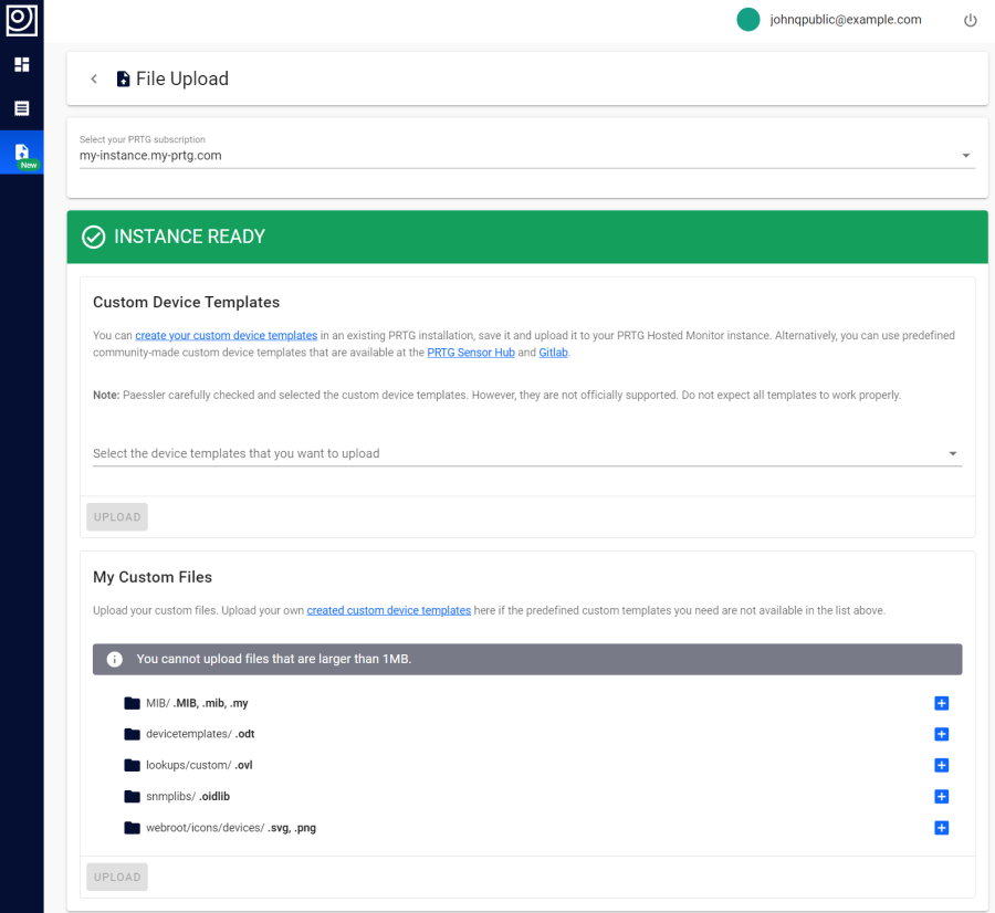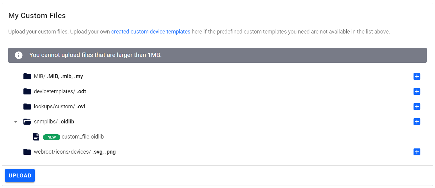 Here you can upload custom device templates and custom files.