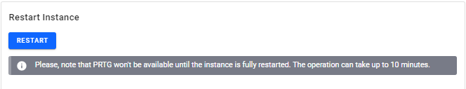 To restart your PRTG Hosted Monitor instance, click Restart.