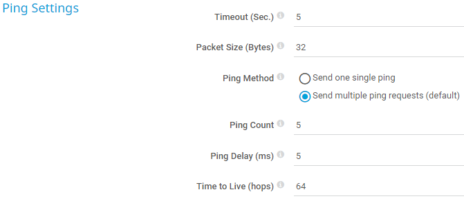 i_round_blueIf you select this setting, all of the ping requests must be lost for the sensor to show the Down status. For example, if only one ping request is answered in a series of five, the sensor still shows the Up status.