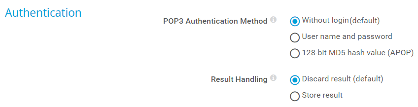 Select the authentication method for the POP3 connection: