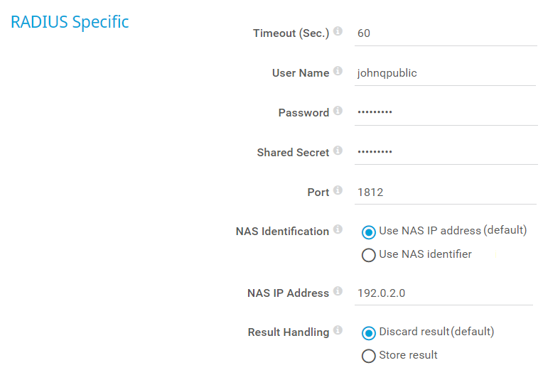 Enter the user name for the authentication against the RADIUS server. Enter a string.