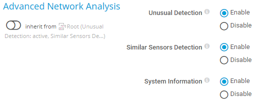 You can also enable or disable the similar sensors detection for specific probes, groups, and devices, and specify inheritance in the object's settings, section Advanced Network Analysis.