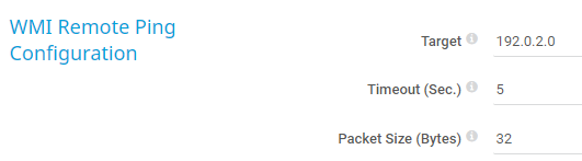Enter the Domain Name System (DNS) name or IP address of the target device that you want to ping. The sensor remotely connects to its parent device via WMI. Then it performs a ping request from this remote device to the target device or server. Enter a string.